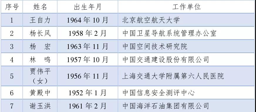 中國工程院2021年當選外籍院士名單(共20人)