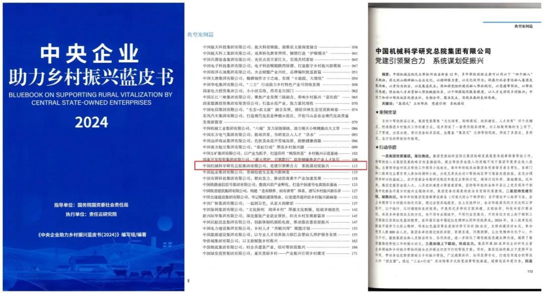 國務(wù)院國資委發(fā)布了《中央企業(yè)助力鄉(xiāng)村振興藍(lán)皮書(2024)》,集團(tuán)申報(bào)的《黨建引領(lǐng)聚合力 系統(tǒng)謀劃促振興》案例成功入選了2024年中央企業(yè)助力鄉(xiāng)村振興典型案例。